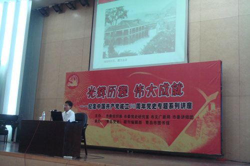党史专题系列讲座是由青岛市组织部、市委党史研究室、市文广新局、市委讲师团联合主办,由《青岛党史》期刊编辑部、青岛市图书馆承办的为庆祝中国共产党成立90周年的大型专题系列讲座。(研究生党总支 史睿超)
