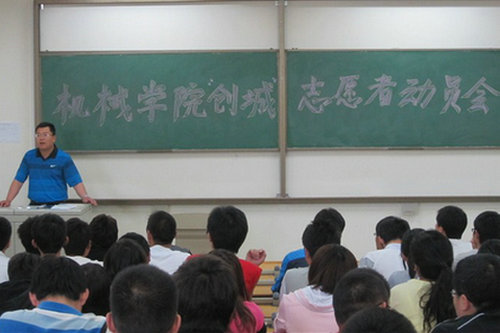 5月27日下午,机械学院在黄岛新校区主教学楼B130召开“创建文明城市”志愿者动员大会,学院150余名志愿者参加了会议。09级辅导员化磊老师出席会议并讲话。