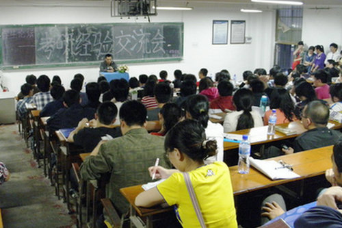 此次经验交流会主要分两个环节。在经验分享环节,学长学姐们根据自己的经历,详细为大家讲解了自己选择考研学校的理由、所在学校考研科目的内容、特点及怎样准备、学校的招生计划、现阶段同学们应做什么怎么做、如何给自己良好定位及保持良好的心态和信心这几方面的内容。学长们还强调,只要下定了考研的决心就一定要付出努力,制定合理的计划并坚持下去。互动环节里,同学们积极地与师兄师姐们交流关于考研的种种问题,师兄、师姐也耐心、详细地解答同学们的疑惑,还为大家讲解了一些面试时应该注意的问题。