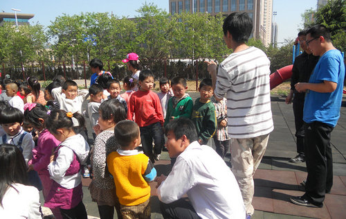 下午1点半,爱心社成员一行来到了位于区政府旁的幼儿园。在明媚的阳光下,成员们分成3组,分别和大、中、小班的小朋友们做户外互动游戏。成员们还教小朋友们折千纸鹤,给他们讲故事,教他们手语、画画,进行一些益智游戏,小朋友们十分配合,幼儿园中充满了欢声笑语。与小朋友之间的友好互动让同学们度过了一个充实的下午。