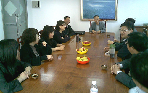 5月4日上午,土木学院参加“班级教授建制”活动的10余名教授在学院党总支书记刘健的带领下,走访了青岛城乡建筑设计院,设计院院长、我校工民建专业86级校友杨敏热情接待了刘书记一行,双方进行了简单的座谈。