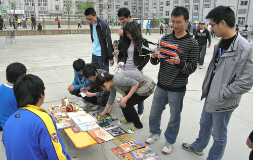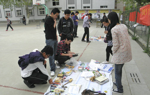 下午3点,活动刚一开始,便有很多慕海报之名而来的同学来到各个摊位前。来自四方校区的各个学院各个年级的40个摊位上,种类繁杂的商品令人瞠目结舌,工艺品、衣物、日用品,还有各种各样的书籍都被摆在了摊位上。其中,尤以考研、四六级英语的教辅材料受到同学们的青睐。为确保活动的顺利进行,建筑学院学生会办公室的同学们一直在现场忙碌着帮助维持秩序。