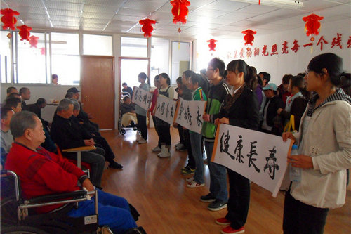 此次活动得到广大同学的热烈响应,大家积极参加。在整个活动中,同学们分成几个小组,来到老人的房间,主动同老人们拉起家常、下象棋、看电视,有的同学们还拿起卫生工具帮老人清扫房间。其间,大家为老人送上精彩的文艺表演,把对老人的祝福凝聚在一个个真诚的节目中,并送出大家精心准备的水果和糕点。午饭时间,大家来到厨房亲自动手为爷爷奶奶们包饺子,当热气腾腾的饺子端到老人面前,画面十分温馨。在离开之际,大家纷纷表示以后会多抽时间来看望老人。