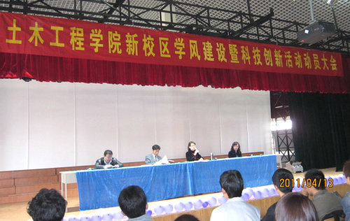 土木学院在新校区召开学风建设暨科技创新活动动员大会,充分体现了学院对加强学风建设和培养学生科技能力的重视,必将调动同学们积极参与科技创新的激情,更好地促进优良学风的形成。(土木学院)