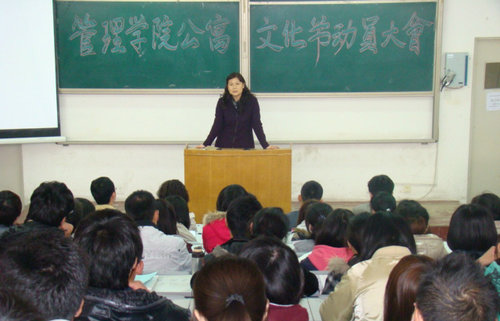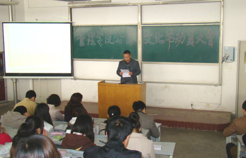 4月7日下午,管理学院在2教阶401举行了学院公寓文化节动员大会。管理学院党总支书记王新出席并讲话,党总支副书记申维东、团总支书记于利俊、各级辅导员和各班的班长、团支书、治保小组组长出席了此次会议。会议由于利俊老师主持。