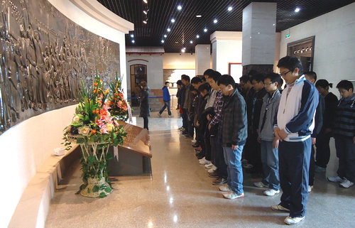 全体学生党员步行一小时,来到革命烈士纪念馆,向“山河魂”烈士群雕敬献了花篮,深切缅怀为中华民族的独立和解放、为社会主义现代化建设而英勇献身的革命先烈,向革命先烈的丰功伟绩致以崇高敬意。