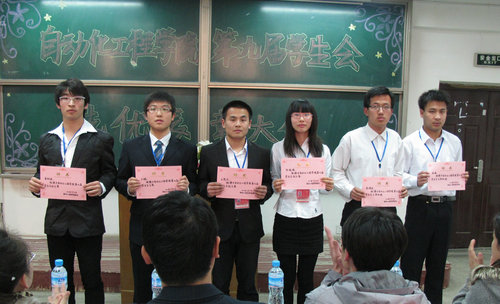 3月30日下午,自动化工程学院九届学生会先优表彰大会在阶教303举行,校团委副书记焦红良,自动化工程院党总支副书记于波,团总支书记甘露露,辅导员杨文超、宁利红出席了此次表彰大会。
