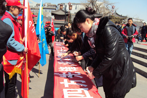 上午10点,社会各界包括政界人士、广大市民、高校学生在内的人士云集李沧文化广场,随着一段精彩的时装秀,启动仪式的序幕正式拉开。主持人宣布启动仪式开始,各位与会代表向市民分发环保购物袋,并与各位志愿者代表进行了志愿先锋旗帜交接仪式。随后四方区相关领导讲话,就本次活动主题“我是四方先锋”做了深刻剖析,倡导市民讲文明树新风,争做为社会、为他人奉献的志愿者。大会接近尾声时,与会代表和志愿者们纷纷在写着“我是四方先锋 讲文明树新风——人人都是志愿者”的条幅上签名,最后创城志愿活动启动仪式在大家热烈的掌声中圆满结束。