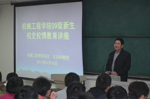 近日,机械工程学院在黄岛新校区B311举办09级学生校情校史教育大会,学院党总支书记王廷和为09级同学作专题讲座。团总支书记贺治成、09级辅导员化磊和09级全体同学参加讲座。