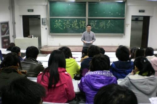 3月17日晚,人文学院在二教阶302举行英语选课说明会,学院邀请外国语学院冯志国老师为学院广告社工专业09级全体学生作具体说明。
