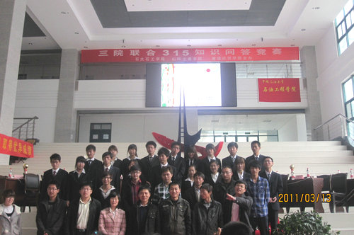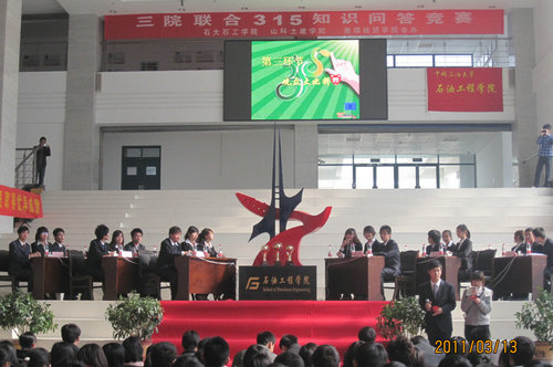 3月13日,由艾弗森贝博ballbet官网经贸学院、中国石油大学石工学院、山东科技大学土建学院联合承办的“3.15知识问答竞赛”在中国石油大学成功举办。各学院的老师和学生会干部参加了此次活动。经贸学院10级辅导员孟明老师应邀参加此次活动。