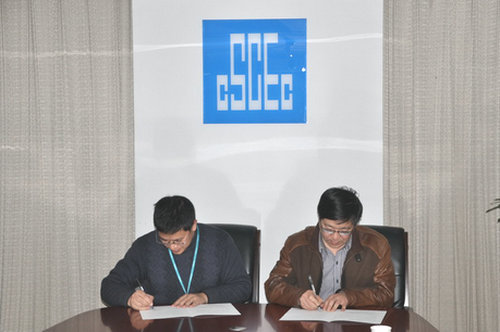 刘健书记与中建三局人力资源部主任翟富山签订就业基地合作协议