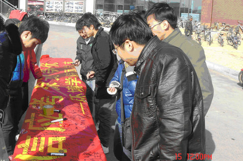 本次活动历时一个半小时,吸引了众多同学的参与,尽管活动当天天气寒冷,同学们还是认真的观看“零挂科”海报、认真地听工作人员讲解,并表示对即将到来的期末考试做好准备,诚信应考。红色的横幅一会儿写满了同学们的签名。