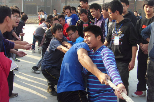 本次比赛是以班级为单位进行的,每班各派12名男生,3名女生参赛 ,2010级12支队伍参加了比赛。比赛中,同学们团结一致、齐心协力地喊着“一、二、一、二”的口号。周围观赛的同学也被参赛队员的气势所感染,加油声此起彼伏,充分展现了当代大学生的激情与活力。最终,经过两个多小时顽强拼搏和激烈角逐,机械106班凭借过强的实力赢得冠军。机械101班虽然是复活赛上来的,但凭借其强大的凝聚力赢得了本次比赛的第二名,赛后进行了颁奖仪式,并颁发了奖状和奖品。