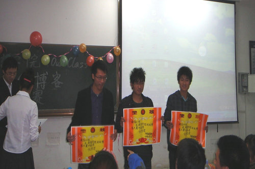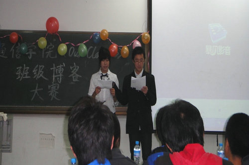 经过通信学院10级各班同学的携手努力,10级六个班的博客都已成立并逐步完善。为了展示同学们的劳动成果,通信学院学生会网络技术部于12月3日晚7点,在三教308举行了一场主题为“our class ”的班级博客大赛。10级全体学生共同观看了该场比赛。
