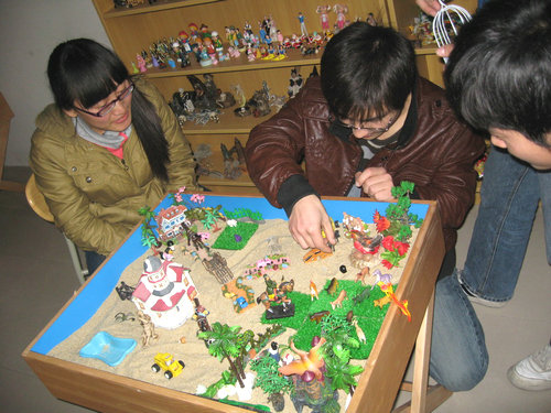 沙盘游戏作为国际上比较流行的一种有效挖掘人类潜意识的活动性治疗方法和心理分析技术,起源于瑞士心理分析家多拉·卡尔夫,通过把沙具在特制沙盘中的摆放来投射心理,正逐渐被学校心理教育所采用。(土木工程学院张继清)
