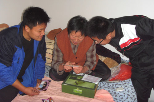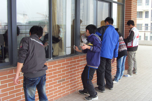 上午8:30,同学们在安养中心工作人员的安排下开始了志愿活动。首先,同学们为老年人打扫卫生。凛冽的寒风中,同学们干得热火朝天,丝毫没有感觉到冷,经过一个多小时的进行打扫,玻璃护栏变得干净整洁。随后,同学们到房间里陪老人们聊天,老人们看到同学们来看望他们都特别高兴,特别感动,笑着将他们拉到身边,握着他们的手,讲起自己过去的事情。一位老奶奶拿出自己的“全家福”高兴地说给同学们听,歌声笑声传染整个安养院。临走时,老奶奶握住同学们的手,笑着说“俺们真高兴”,“孩子,咱们下个星期见”。