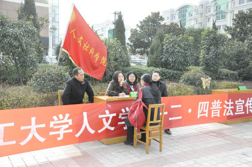 12月4日,一年一度的全国法制宣传日。为了让广大市民更好地了解法律知识,提高法律意识和维权意识,人文学院组织法律专业老师走上街头,宣传法律知识,同时为广大市民免费进行法律咨询,解答市民心中的法律问题。