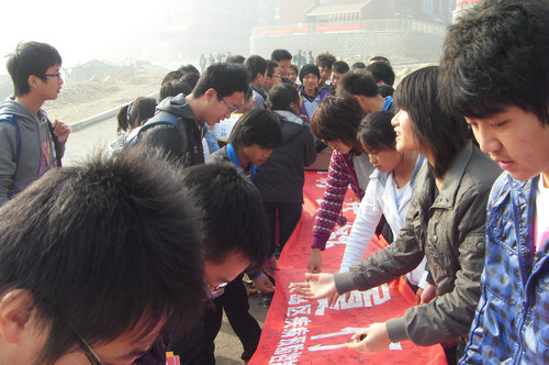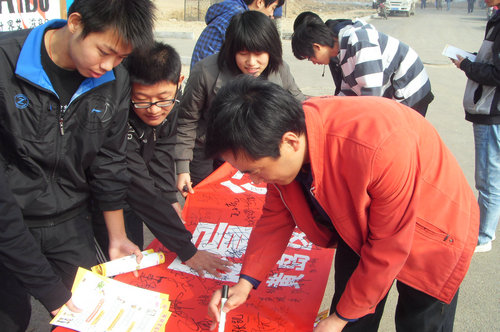 此次活动,红十字志愿服务团的同学们通过发放有关预防艾滋病基本知识的宣传单、横幅签名以及“有奖问答”三种方式来普及艾滋病知识。活动中,同学们热情很高,纷纷停下匆忙的脚步,在“遏制艾滋,履行承诺”的宣传横幅上庄重的签下自己的名字,七米长的横幅仍显得很窄小,一个个重叠的名字,就是一份份承诺——生命的承诺,如此厚重!“有奖问答”的互动方式让同学们在轻松娱乐的环境中学会了艾滋病的相关知识,加深了对艾滋病的了解。