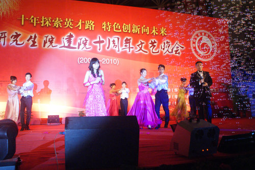 歌伴舞《小酒窝》节目在中国石油大学(华东)研究生院建院十周年之际,受邀参加该校的庆典演出。节目中交谊舞的优雅与情歌的甜蜜相交织,新颖的构思和美轮美奂的舞台效果给兄弟院校的师生们带来了极大的视听享受,同时也为此次庆典送上了青岛理工学子的真诚祝贺。同日晚,手语表演《爱》参加了我校商学院举办的“形象素质大赛”演出,研究生的青春风采赢得了场内同学们阵阵掌声与欢呼。