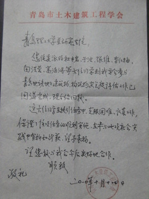 通过此次调研的实践活动,大家收获颇多,也深获委托单位的好评,工程调研实践结束后,青岛市土木建筑工程学会特为我校发来感谢信,以表扬这六位同学在执行任务中,克服困难,认真工作,顽强拼搏的精神。我校研究生良好的精神风貌和认真的学术作风是我校研究生教育多年来不断积累和发展的结果,此次实践活动的圆满成功为社会单位和我校今后的合作打下了良好的基础。(研究生党总支 张瑾陈际洲)