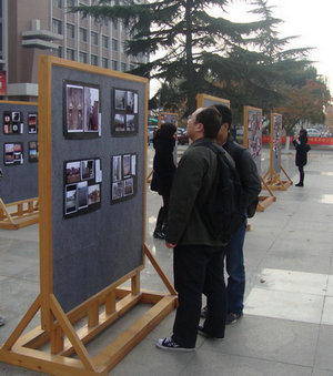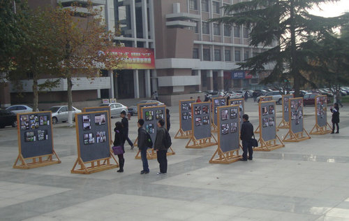 11月17上午,由艺术学院举办的2008级采风摄影展在四方校区科技图书楼广场开幕。