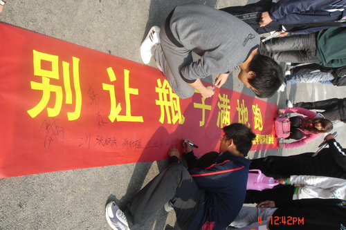 11月4日,环境学院环保协会在新校区学生6公寓出口处成功举行了名为“别让瓶子满地跑”的大型活动。