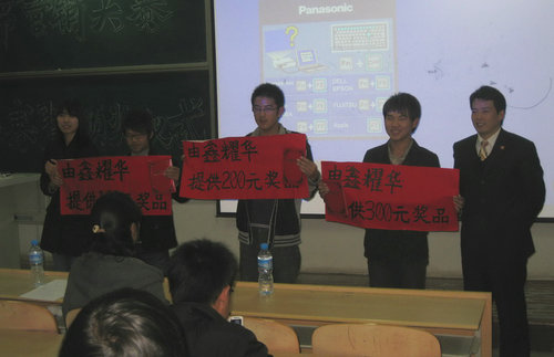 决赛比赛在观众热烈的掌声中拉开了帷幕,比赛过程中参赛选手做了精彩的PPT展示,详细讲解了自己的营销策划书,接下来,各参赛同学就销售实战环节结果做了汇报,并谈了自己的心得感悟。随后,评委们对于各选手在营销策划与销售实战环节的表现进行了提问,选手们也做出了精彩的回答。经过最终的评比,商学院10级市场营销1班的徐浩同学获得一等奖。最后,俞以平副教授做了精彩的点评。