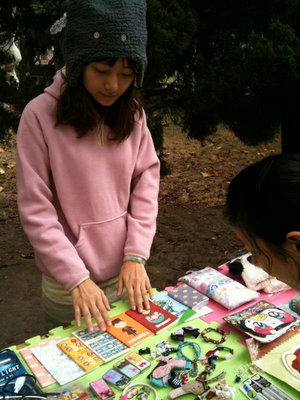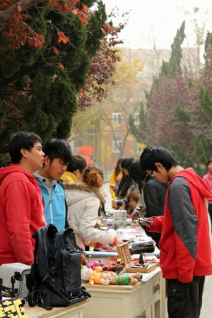 此次创意集市共设摊位二十余个,琳琅满目的商品中既有时尚的衣帽,风格迥异的首饰,也有色彩清新艳丽的植物盆栽和制作精良的手工艺品。在一个纯手工工艺品制作的摊位前,摆放着以植物大战僵尸为原型的软陶泥塑,各个栩栩如生、精致可爱,同学们看到网络游戏中喜爱的面孔,亲切感十足,纷纷争相购买。而另一摊位出售个人收藏更是引人注目,几幅色彩炫丽、幽默可爱的手绘卡通人像将大家的目光吸引,据摊主介绍,这几幅手绘作品均出自艺设094班邱琛同学之手,她所绘制的卡通人像正是此次活动的发起人刘海月同学和慈博群同学。劲爆的音乐、流动的人群、此起彼伏的叫卖声将集市的气氛一次次推向高潮。