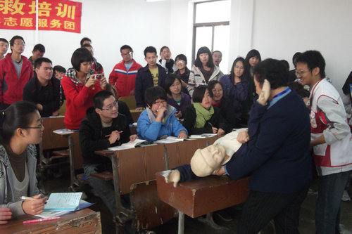 为了增加同学们有关急救方面的知识,使他们在遇到意外事故时能够采取一定的急救措施来减少伤亡情况,10月30日,在一教425阶我校红十字志愿服务团组织了急救培训活动。