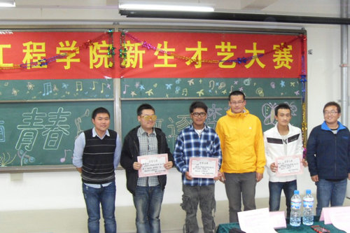 10月26日晚,机械工程学院2010级新生才艺大赛在黄岛新校区B201举行。此次比赛由机械学院学生会主办,以“飞扬青春,展现自我”的主题,采取现场打分公布成绩的方式,最终决出了前三名并颁发了奖状奖品,本次大赛由土木学院辅导员史堃老师、机械学院辅导员王中帅老师、机械学生会负责人担任评委。