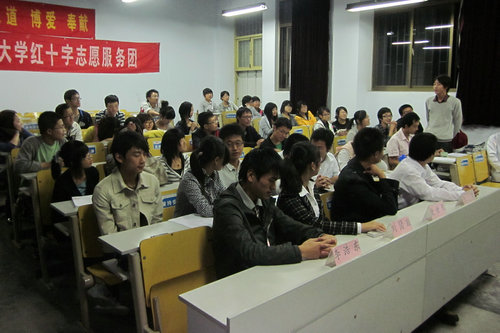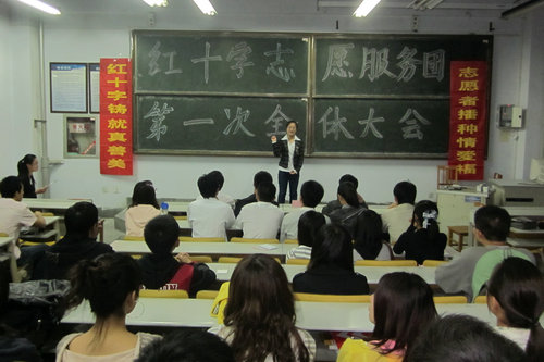 大会伊始,红十字志愿服务团现任团长向大家介绍了红十字志愿服务团的工作,并对10月13日无偿献血中团内成员的表现提出了表扬。接着,各部部长依次上台发言,各位部长具体介绍了各部的主要活动如“青尘”“残疾人网店”等,倡导大家积极努力,将活动办好。随后,团内的新干事依次进行了自我介绍,增强了大家彼此之间的了解,拉近了大家的距离。最后,红十字志愿服务团前任团长对大会进行了总结,并与新干事们分享了大学学习与生活的经验,帮助他们尽快的适应大学生活。