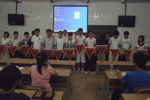 首先,学生会主席王卓君代表学生会做了本学期工作总结,接着,团总支书记贺治成老师宣读了本学期评选的学生会优秀部长、优秀干事、优秀活动以及优秀宿舍和优秀班级的获奖名单,并颁发了相应的奖状、证书以及奖品,并对标兵宿舍进行了授旗。