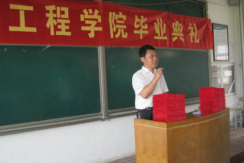 首先,王斌院长向即将告别象牙塔,踏上人生新征途的毕业生们表示衷心的祝贺和良好的祝愿。与此同时,他希望大家爱岗敬业,踏实工作,勤勤恳恳,历练心志,在工作岗位上建功立业;希望大家走出校门之后,继续关心学院的建设和发展,为学院更加美好的明天献计献策。梁倩倩同学代表全体毕业生做了简短的发言,表达了对理工大的感激与依恋,并保证在今后的学习生活中会继续努力绝不辜负老师的殷切期望。随后,学院领导为2010届毕业生颁发了毕业证书。