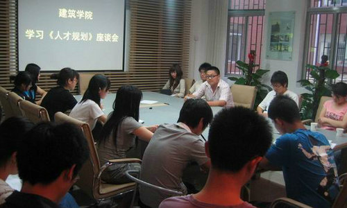6月17日晚6点,建筑学院学习《人才规划》座谈会于建筑馆302室举行。建筑学院团总支书记谢春虎、07、08级团支书及同学代表出席座谈会并进行了热烈的交流,团总支副书记邓昕主持座谈会。