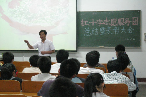 6月10日晚7点,红十字志愿服务团在红楼308室召开了学期工作总结暨表彰大会,机械学院团总支书记贺治成老师出席了本次大会。