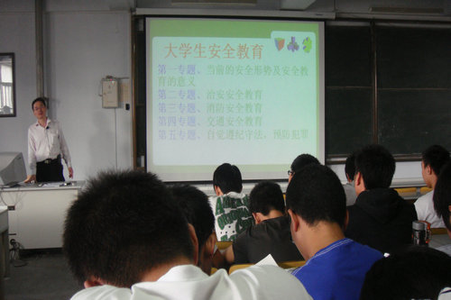 张建军老师首先引导学生了解国际安全环境和高校的治安形势,了解大学生安全教育的必要性和重要性,了解大学生应该掌握的安全常识。在讲座中针对在校大学生近年来的安全问题从人身安全、财物安全、交通安全、消防安全等方面结合案例为同学们作了详细的说明。时下正值上海世博会和南非世界杯期间,一定要注意外出的交通安全、人身安全、财物安全,要遵纪守法,遵守社会道德规范,自觉维护学校和大学生形象。最后张老师告诫同学们要加强消防安全意识,保管好自己的财物,做好安全防范,提高自己处理紧急突发事件的能力。