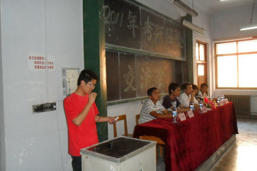 大会上,学长们首先介绍了各自在考研过程中经验体会、各科的复习方法及应该注意的问题。尤其强调了基础知识和心态的重要性,同时解答了同学对考研的疑问。在自由问答阶段,同学们怀着激动的心情,把各位学长团团围住,问个不停,学长们不厌其烦的一一予以解答,言语中给了同学们很大的鼓励。