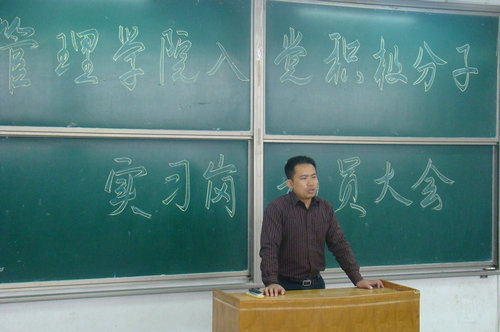 为进一步规范管理学院党建工作的流程,建立健全学生党建工作机制,加强对入党积极分子的教育管理,确保入党积极分子队伍的先进性, 5月18日下午,管理学院在阶教401召开了入党积极分子实习岗动员大会。党总支副书记申维东,学生第三党支部书记于利俊、副书记曲燕,学生第四党支部书记于淼、副书记刘亚鹏出席了此次大会。