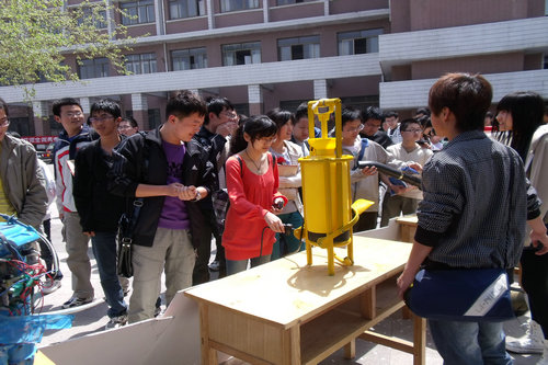 此次机电创新设计大赛作品展主要展出了08——09年中获得山东省一、二、三等奖的优秀创新作品,并与青岛大学两校联合展出,将机电创新中形式多样的优秀作品悉数展现在同学们的眼前,引起前来观看同学的声声称赞,让同学们在观看作品的同时体味创新的乐趣与力量,进一步激发同学们的创新意识,从同学们的作品中启迪创新思维。