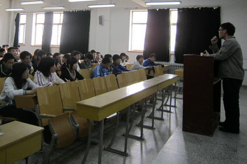 为更好的促进学院与黄岛校区09级学生之间的交流以及学院文化的传承,解答09级同学们关于专业知识以及四方校区生活的种种疑惑,5月9日上午,环境学院与人文学院共同合作,在黄岛校区三号教学楼召开了此次交流会。环境学院全体09级新生参加了此次交流会。