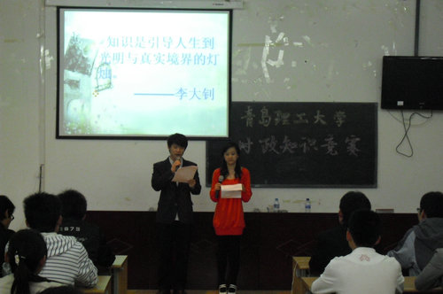 大赛在优美的歌曲中落下帷幕。此次比赛以知识竞赛的形式在全校学生中开展,内容新颖,涉及到了政治、经济和最新国内重大新闻事件,旨在提高我校学生关心时事政治的意识,增强参政议政的思想觉悟,进而提高同学们的政治素养,争做具有崇高思想的新时代青年。(机械学院 徐卫晓)