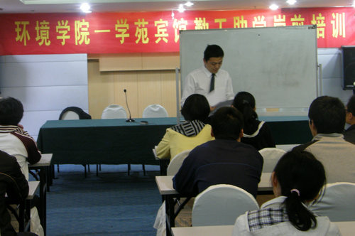 环境学院积极开展勤工助学工作,切实解决特困生的实际困难。近日,环境学院与学苑宾馆达成合作意向,在学苑宾馆设立了环境学院大学生勤工助学工作岗位。5月6日下午,18名同学参加了在学苑宾馆会议室举行的勤工助学工作岗前培训。