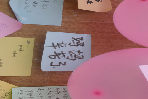 上午8时许活动拉开序幕。整个活动由横幅上签字和在便利贴上传达祝福两部分组成。同学们都很踊跃,积极参加。在这个特殊的节日里,同学们也许无法和母亲团聚,一起庆祝母亲的节日,但同学们还是把对母亲的祝福写在便利贴上,通过这小小的卡片,向远方的母亲的传达深深地祝福。