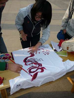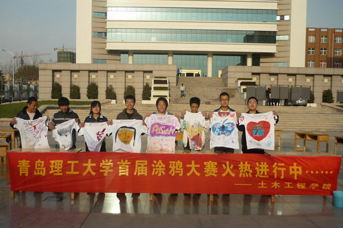近日,为了丰富校园文化生活,激发同学们的创作设计热情,土木学院在科技广场举行了T恤衫涂鸦大赛。 来自四方校区各院系经过初选产生的15支参赛队伍各自在白色T恤衫上完成设计、剪裁以及绘制工作,每组3名队员分工合作,有的布图、有的剪裁、有的调染料,各展才华。有的简约、有的夸张、有的重在色彩运用、有的手法别出心裁,不少同学都把为玉树灾区祈福作为绘画主题,传递了一份关爱。赛后,艺术学院张建新书记、土木学院刘建秀副院长、辅导员张继清、邵先锋等老师和广大同学观看了展出的作品并进行了评比。 这次活动为同学们提供了展示才华的舞台,也带来了新的乐趣,丰富了和谐校园文化的内容和形式。(土木学院)