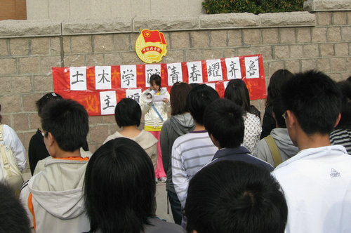 5月4日,土木学院在四方校区南院篮球场举行“青春耀齐鲁”主题团日活动,迎接五四青年节。辅导员张继清和各团支部代表100余人参加活动。