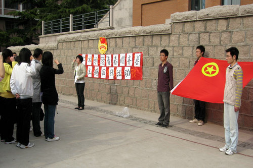 下午4时整,张继清老师宣布主题团日活动开始,并希望各团支部将团员意识教育活动深入开展下去。土木088团支书杨豪杰讲解了团的性质、团旗、团徽相关知识;全体团员代表齐唱团歌;在优秀毕业生土木064班刘丛丛带领下,1名新团员宣誓入团,老团员重温了入团誓词;土木0813班团支书孙红阳向全体团员发出倡议,号召大家为团旗增辉,让青春在奉献中闪光。同学们手拉手,共排“团旗”图案,表达作为一名共青团员的自豪感,主题团日活动圆满结束。