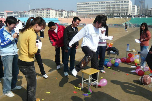 日前,由学生处公寓管理中心主办,经贸学院承办的公寓嘉年华吉尼斯暨趣味运动会在黄岛校区大操场拉开帷幕,经贸学院09级各班同学以宿舍为单位组队参加了此次活动。