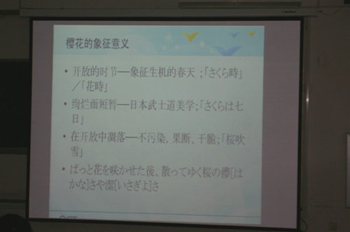 4月28日,日本企业文化交流会在黄岛校区2教421室举行,计算机学院软件工程(信息技术外包方向)专业2009级学生49人参加了交流会。